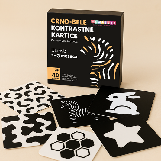 Crno-bele kontrastne kartice za razvoj vida kod beba